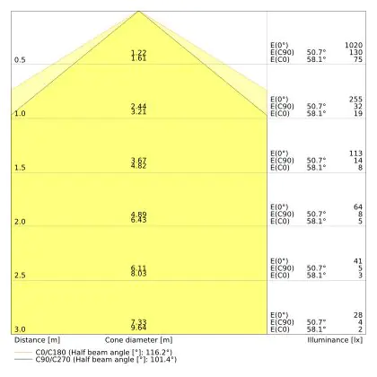 The colour code is a combination of colour rendering (CRI) and light colour (Kelvin). The first number indicates the colour rendering (1 = very poor colour rendering, 9 = maximum colour fastness). The second and third number contains the light colour. Example: the colour code 830 consists of good colour rendering (8) and warm white light (3000K). |