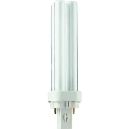 Philips PL-C 2P are compact fluorescent lamps with separate power supplies. They are energy efficient lamps with a 2 pin socket. These lamps run on an electromagnetic control equipment. Each compact fluorescent lamp of this range has a base type G24d-1 with 2 metal pins. Philips PL-C 13W 827 2P lamps have a size of 1450 cm.